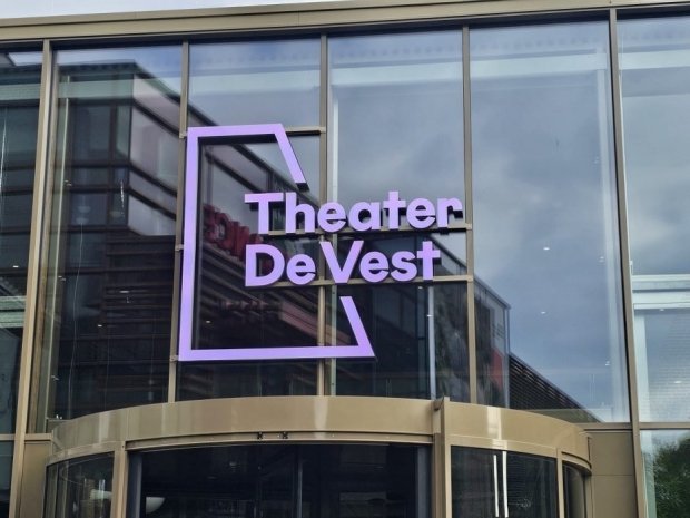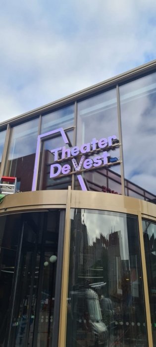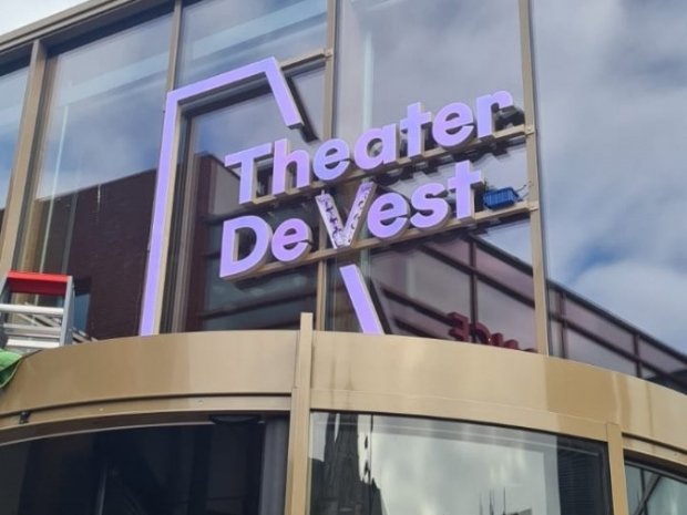 Taqa Theater de Vest heet vanaf september 2025 weer 'gewoon' Theater De Vest en uiteraard produceerde en monteerde Haaxman hiervoor het fraaie nieuwe logo boven het tourniket.