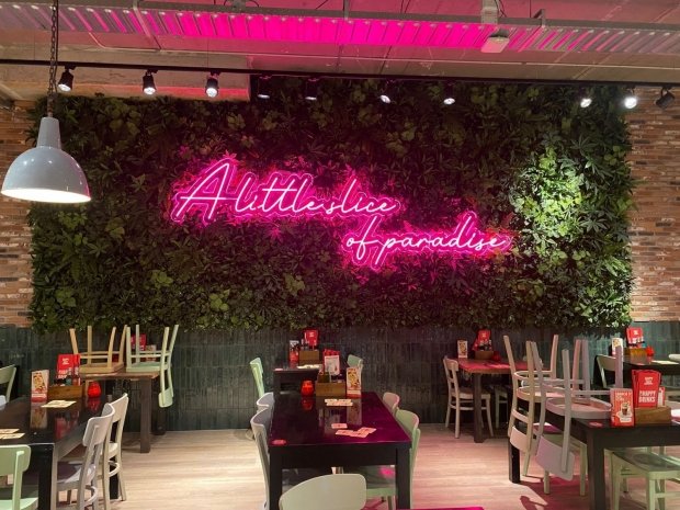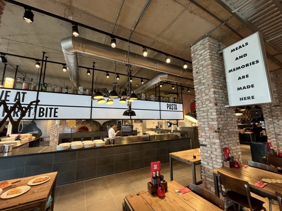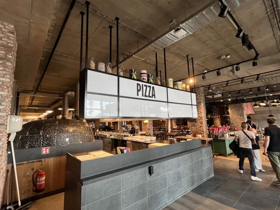 Op 1 wand werd een Mona Lisa met reliëf-snor aangebracht en werden de wanden voorzien van beton 'look' Dibond panelen. Oordeelt u zelf: Dit ziet er toch erg goed uit! Dus voor de lekkerste pizza's gaat u naar Happy Italy en voor de mooiste (licht)reclame elementen gaat u naar Haaxman!